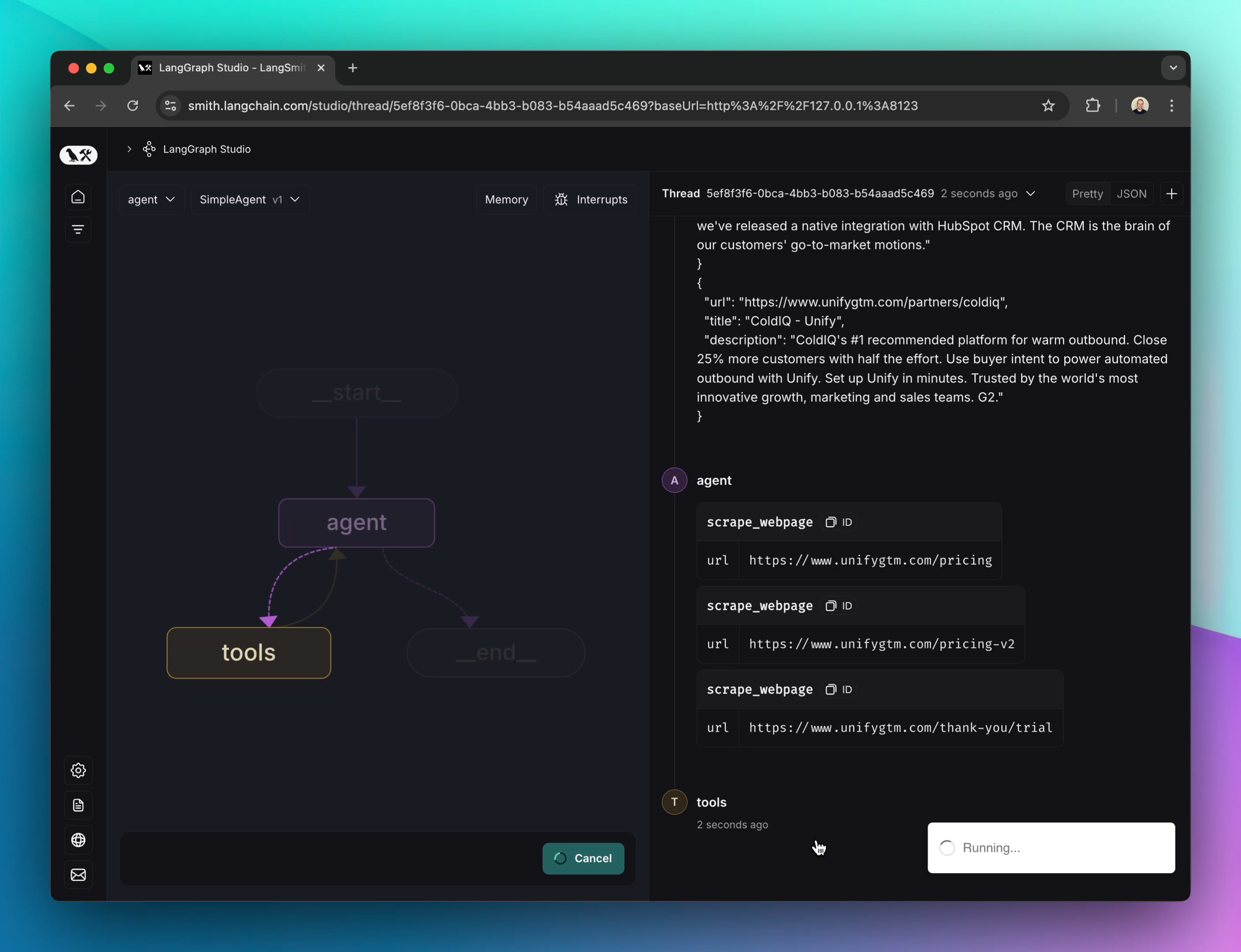 我们对此(我们也已经在为 Unify 的另一项 LLM 驱动功能 Smart Snippets 使用 LangSmith)感到非常满意。特别是,版本化数据集正是我们所期望的。运行和比较实验非常简单,而且跟踪功能也非常出色。我们能够在数百个示例上运行新的代理版本,并在给定的数据集上快速将其与以前的版本进行比较,而无需大量的内部机器学习基础设施工作。