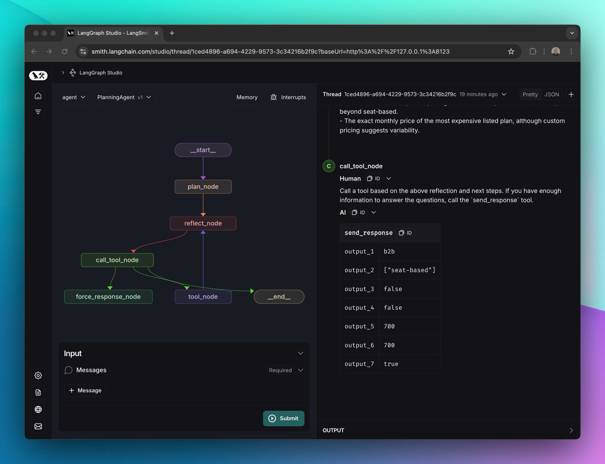 回到代理,我们最终的用户体验是用户可以清楚地看到代理正在分步进行分析其决策过程,并弄清楚他们需要提供哪些额外的指导。